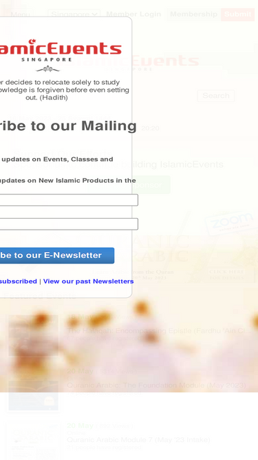 96%islamicevents.sg is your one-stop portal for islamic events, religious knowledge classes and courses, halal food and musollah locations all around singapore.