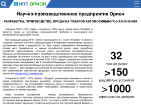 нпп "орион" проектирует и поставляет на рынок серию товаров автомобильного назначения. мы предоставляем отличное качество в сочетании с доступными ценами.