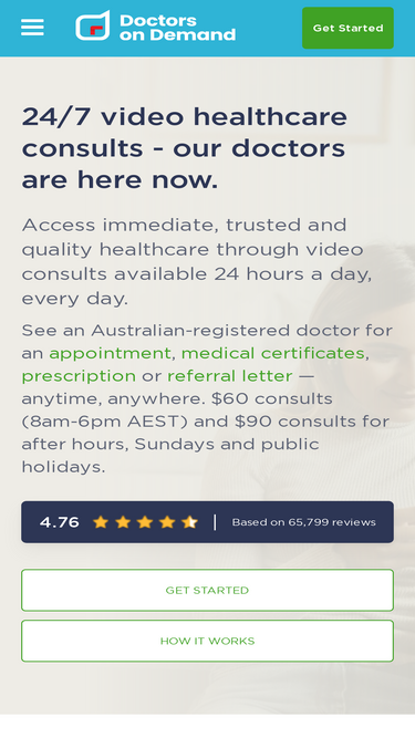 95%Qoctor is an Australian online doctor service. Prescriptions, medical certificates, referrals, blood tests & GP appointments. Open 365 days. From $14.99 to see a doctor online. Same day, quick service. 8am-midnight. Telehealth appointments available in 15 minutes. Quality telehealth doctor consultations via video call or phone call, complying with Australian Medical Board Telehealth standards.
