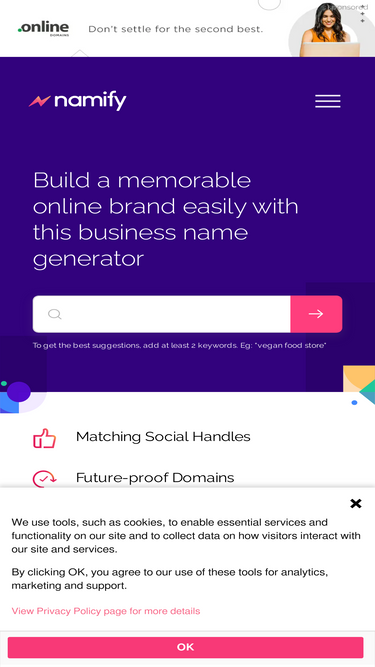 80%namify is the best way to get a unique business name and free logo in seconds. get unlimited number of catchy brand names and register your domain now!✅