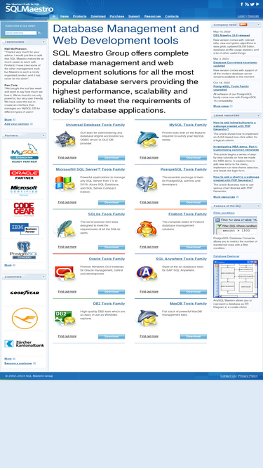 86%sql maestro group vendors powerful database management and web development tools for mysql, oracle, sql server, db2, sql anywhere, postgresql, sqlite, firebird and maxdb.