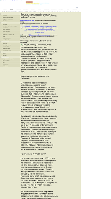 93%сайт про игры для денди. здесь можно скачать игры для денди и почитать интересные статьи об этой приставке.