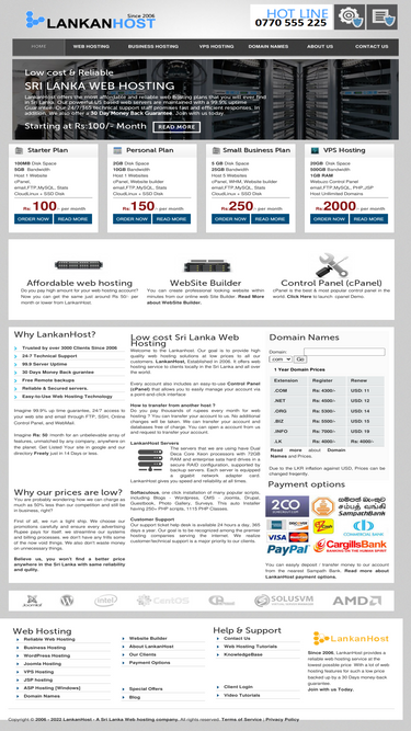 100%sri lanka web hosting company which provides reliable low cost web hosting since 2006. lankanhost web hosting plans from rs:100/-month. also provide windows and asp.net hosting and domain registration services to sri lankan customers.