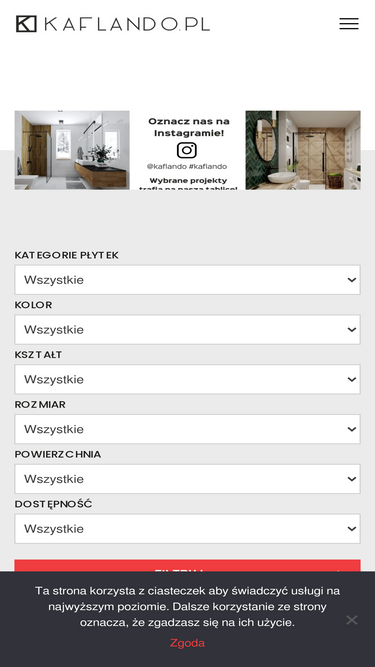 71%KAFLANDO.PL salon płytek ceramicznych i łazienek Rondo Hakena - Ustowo 51 70-001 Szczecin e-mail: sklep@kaflando.pl telefon sklep internetowy: 511-323-505, 503-778-799, 501-660-135 telefon Salon Szczecin: 519-700-519 mail Salon Szczecin: salon@kaflando.pl poniedziałek - piątek: 8 - 18 sobota 9-15