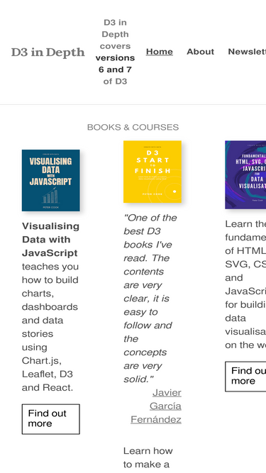 98%How to use D3 scale functions to transform data values into visual values such as positions and colours. This article covers linear scales (scaleLinear), square root scales (scaleSqrt), log scales (scaleLog), sequential scales (scaleSequential), quantized scales (scaleQuantize), quantile scales (scaleQuantile), threshold scales (scaleThreshold), ordinal scales (scaleOrdinal) and band scales (scaleBand). We also cover scale clamping, nice and inversion.