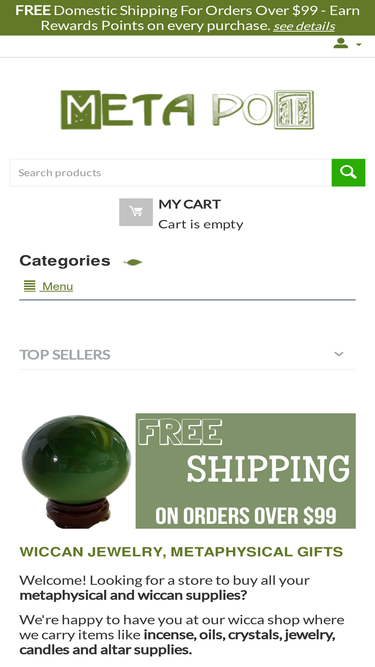 55%serving the wiccan and metaphysical community. featured items include wiccan jewelry and metaphysical gifts. we have items for everyone. ritual supplies, necklaces, pendants, oils, herbs, candles, incense can be found here.