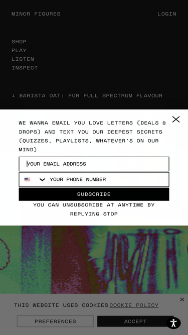 87%10% OFF SUBSCRIPTIONS. MINOR FIGURES is a coffee company that makes coffee products for coffee lovers. Barista Oat. Everyday Oat. Chai. No dairy.