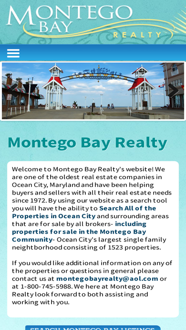 82%welcome to montego bay realty. we provide full service real estate sales services in ocean city, md with our specialty being in the montego bay community. let us help you find your perfect beach house or condominium.
