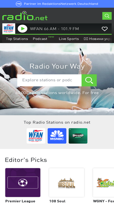 95%Listen to free internet radio, sports, music, news, talk and podcasts. Stream live events, live play-by-play NFL, MLB, NBA, NHL, college football, NCAA basketball, and Premier League matches. CNN, MSNBC, Fox News, ESPN, BBC, NPR.