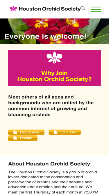 60%The Houston Orchid Society is a group of orchid lovers dedicated to the conservation, preservation, and education of orchids and their habitats.