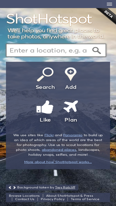 90%Find popular photo locations around the world with ShotHotspot. Whether its for landscapes, holiday snaps or photo tours, we map millions of photographic hotspots.