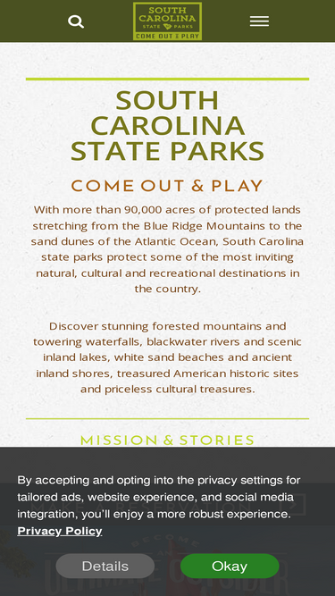 85%with more than 90,000 acres of protected lands stretching from the blue ridge mountains to the sand dunes of the atlantic ocean, south carolina state parks protect some of the most inviting natural, cultural and recreational destinations in the country.