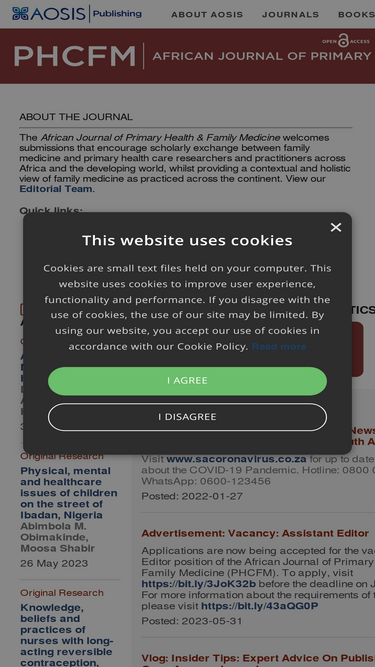 94%the african journal of primary health & family medicine welcomes submissions that encourage scholarly exchange between family medicine and primary health care researchers and practitioners across africa and the developing world, whilst providing a contextual and holistic view of family medicine as practiced across the continent.