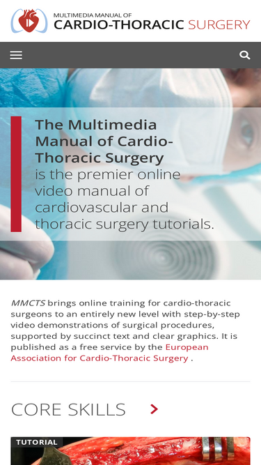 68%mmcts brings online training for cardio-thoracic surgeons to an entirely new level with step-by-step video demonstrations of surgical procedures, supported by succinct text and clear graphics. it is published as a free service by the european association for cardio-thoracic surgery.