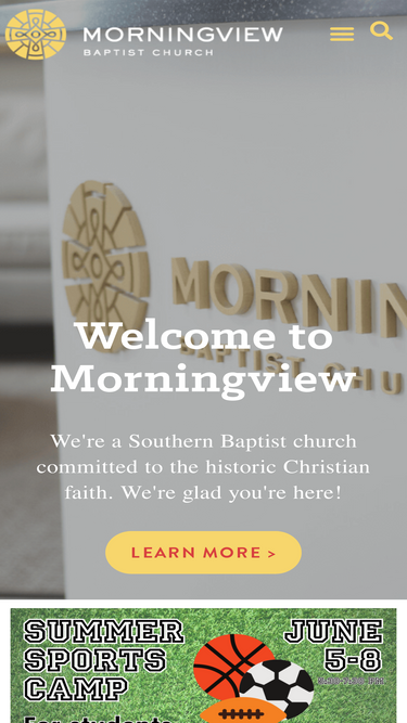 99%Welcome to MorningviewWe're a Southern Baptist church committed to the historic Christian faith. We're glad you're here!LEARN MORE >A Church in