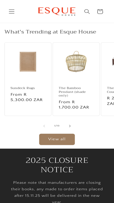Welcome to Esque House. Home to curated furniture + homeware online. Delivered from our house to yours. South Africa.