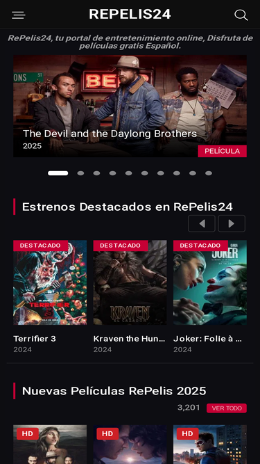 91%Esto es REPELIS24 OFICIAL, la web N1 para ver peliculas y series online gratis en Español Castellano y latino.