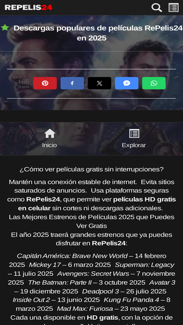 95%⭐ RePelis24 ⭐ te ofrece películas online gratis en la mejor calidad. Disfruta de una amplia selección de géneros y un streaming rápido sin cortes ni publicidad molesta.