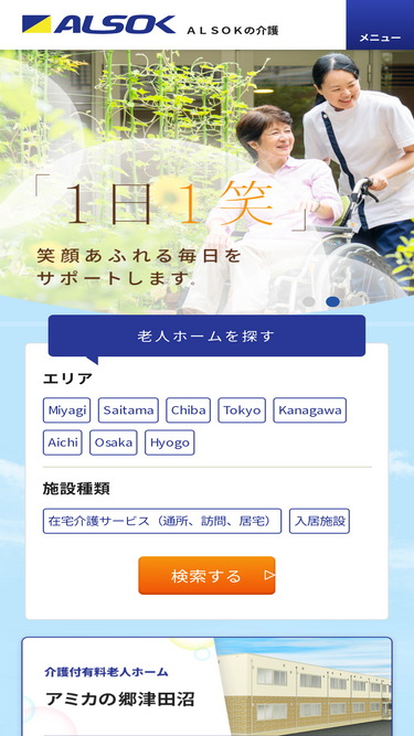 92%【公式】ALSOK介護株式会社では、埼玉・神奈川・東京・千葉などを中心にグループホームや介護付き有料老人ホームなどの運営や幅広く充実した介護サービスを提供しています。介護のことなら、何でもご相談ください。