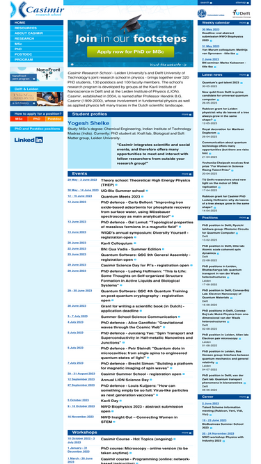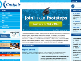 80%casimir is a a joint graduate school between leiden university and delft university of technology with focus on applied and fundamental physics. casimir organizes courses for phd students and also has a pre-phd track for msc. students.