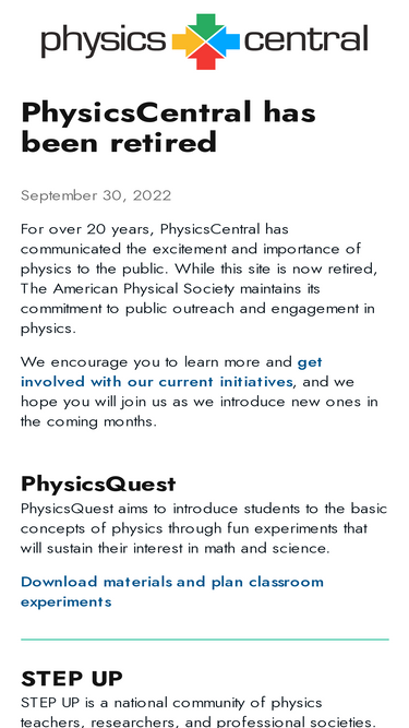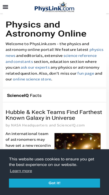 100%physics news, reference, education articles, job board, physics fun, and more. most popular physics and astronomy online portal since 1995!