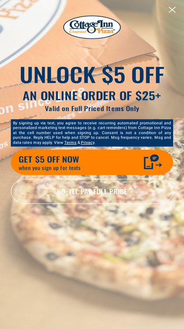 71%Have questions, comments, or want to share your experiences or rave about the food at Cottage Inn Pizza? Share it on our Contact page today.