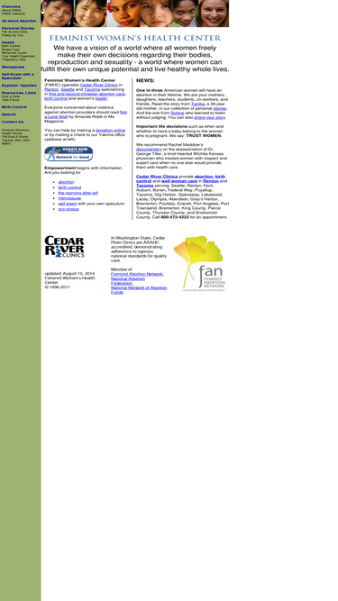 84%feminist women's health center provides empowering women's health information on abortion, contraception, and reproductive freedom and reproductive justice. pro-choice. located in renton, tacoma, yakima, seattle, in washington state (wa). espanol. spanish. abortion, birth control, feminism, contraception, menopause, abortion clinics, breast health, menstruation, family planning, hiv, emergency contraception, menstrual cycles, fertility awareness, self cervical exam, self help, personal abortion stories, pregnancy termination, reproductive freedom, reproductive justice, reproductive health, sexual health, sexual freedom, gender justice. located in renton, tacoma, yakima, seattle, in washington state (wa). espanol. spanish.