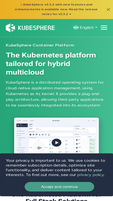 92%KubeSphere is a distributed operating system for cloud-native application management, using Kubernetes as its kernel. It provides a plug-and-play architecture, allowing third-party applications to be seamlessly integrated into its ecosystem.