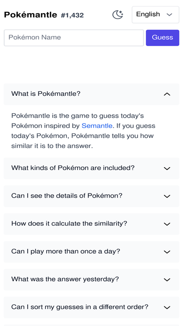 77%PokéRiddle es tu plataforma definitiva para juegos diarios interactivos y desafíos de trivia basados en Pokémon. Pon a prueba tus conocimientos con PokeGuess, Ahorcado Pokémon, PokéTier y más. ¡Descubre tu Pokémon interior!