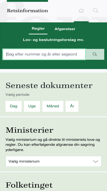 100%retsinformation.dk er indgangen til det fælles statslige retsinformationssystem, der giver adgang til alle gældende love, bekendtgørelser og cirkulærer m.v. der er også adgang til folketingets dokumenter og beretninger fra folketingets ombudsmand.