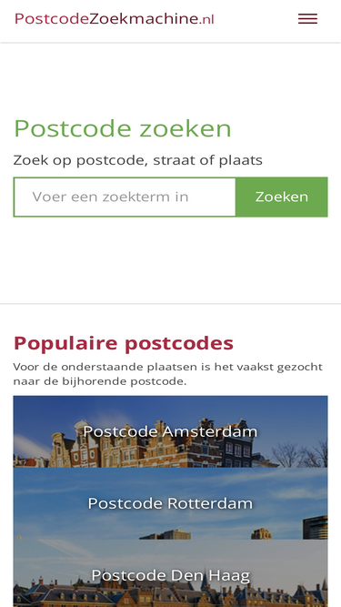 Postcode information for all 2501 places in the Netherlands. Find a list of postcodes, streets and addresses for each city in the Netherlands in one overview.