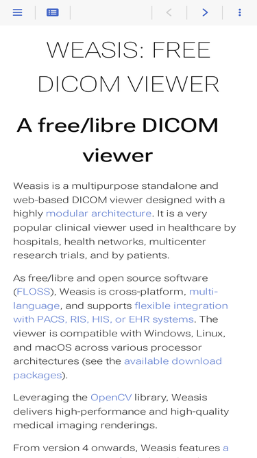 95%weasis is a powerful, multifunctional, and open-source dicom viewer (standalone and web-based). it excels in medical image visualization.