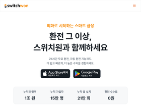 78%환전 그 이상, 스위치원과 함께하세요! 24시간 무료 환전, 자동 환전 기능까지. 더 쉽고 빠르게, 더 높은 수익을 경험하세요. 누적 환전액 1조 원, 누적 가입자 15만 명, 누적 앱 설치 21만 회, 환전 수수료 0원.