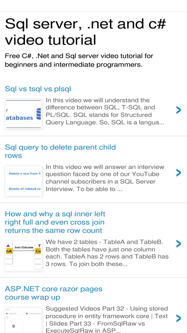 96%Free C#, .NET and SQL Server Video Tutorials for beginners and intermediate programmers.