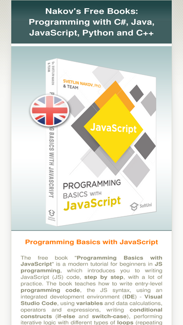 fundamentals of programming with c#, java, javascript, python and c++ books by svetlin nakov and his team - official web site