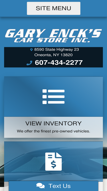 Gary Enck's Car Store Inc. is conveniently located at 8590 State Highway 23. We can also be reached by calling 607-432-2277