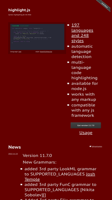 the internet's favorite javascript syntax highlighter supporting node.js and the web.