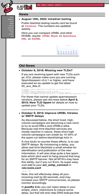 79%uribl.com is a realtime uri blacklist (rhsbl) served via dns to identify unsolicitied bulk and commercial email (uce/ube) based on the links within the email. uribl.com is enabled by default in the popular opensource spamassassin.