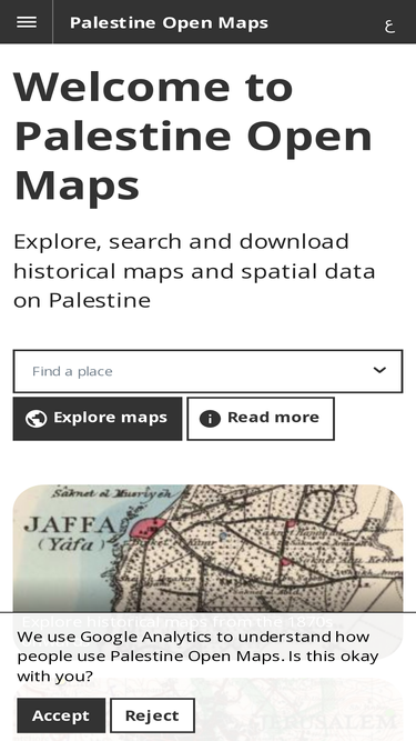 100%استكشِف/ي وتصفّح/ي وحمّل/ي خرائط وبيانات مَكانيّة عَن فِلسطين