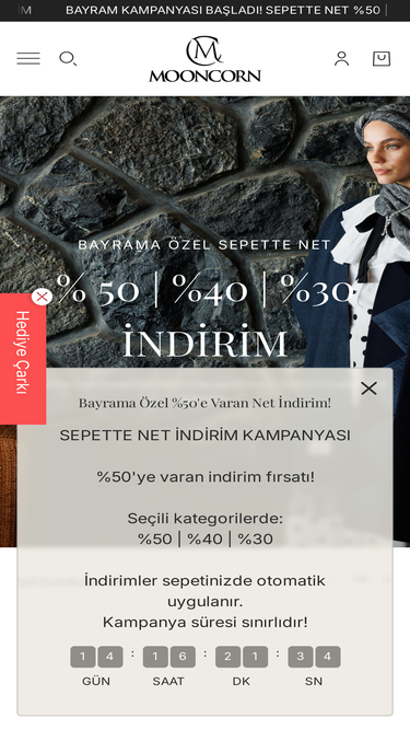 93%Mooncorn.com.tr’de şal, eşarp ve tesettür giyimde kalite ve zarafeti birleştiriyoruz. En şık ve özgün tasarımlarımızla tarzınıza değer katmak için buradayız!