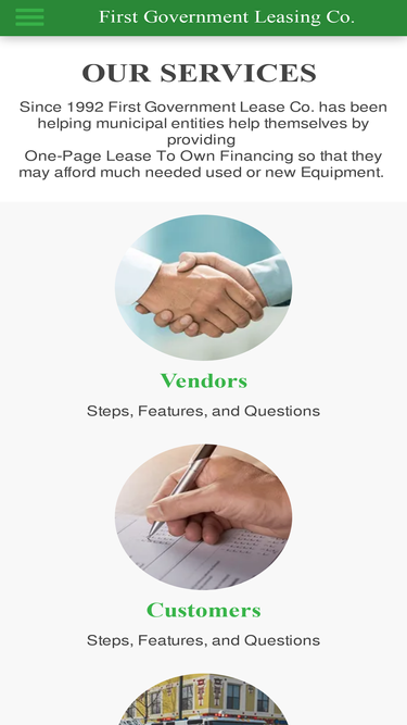 First Government Lease Co. has been helping municipal entities by providing One-Page Lease To Own Financing so that they may afford used or new Equipment.