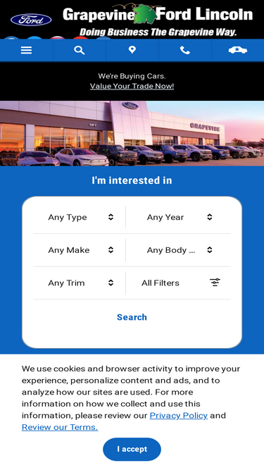 93%purchase from home! welcome to grapevine ford! you'll find a wide variety of new and used cars, trucks and suvs and state of the art parts and service departments. call or visit and speak with a sales professional today!