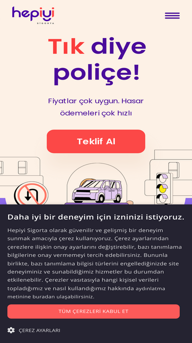99%Hepiyi Sigorta uygun fiyatlı, yenilikçi ve müşteri memnuniyeti odaklı sigorta hizmetleri ile sizlerle! Hemen tıklayın ve siz de Hepiyi'li olun.