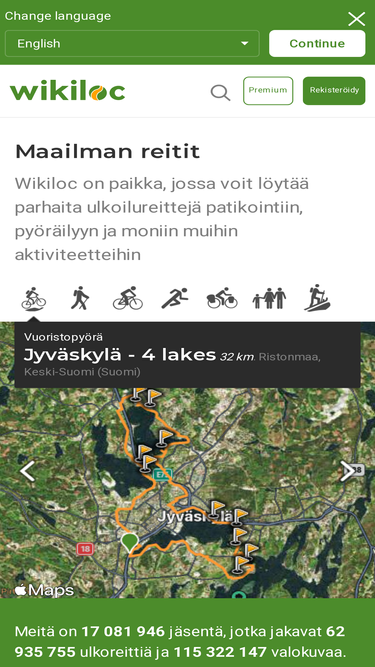 72%Löydä parhaat ulkoilureitit vuoristovaellusretkille, pyöräretkien matkasuunnitelmat, MTB-ajelut ja jopa 80 aktiviteettia. Löydä kauniita paikkoja, lataa GPS-reittejä ja seuraa suosituimpia reittejä kartalla. Tallenna oma reittisi sovelluksesta, lataa se palvelimelle ja jaa se yhteisön kanssa.