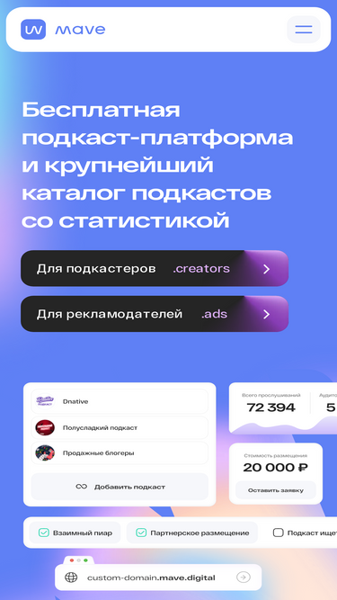80%mave делает работу с подкастами проще, удобнее и эффективнее как для подкастеров, так и для брендов.