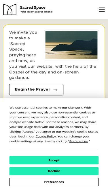 Cookies popup It is a legal requirement for all websites, including SacredSpace.com to ask for permission to use cookies. Sacred Space uses a cookie to remember your choice of music etc. and we use a small number of 3rd party services to help us with things like user statistics and sending emails which are important tools in the […]