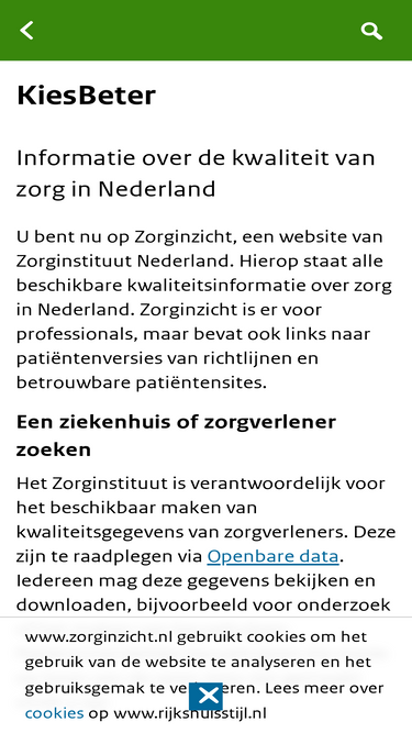 88%Zorginzicht.nl is er voor iedereen die zich bezighoudt met het verbeteren van de kwaliteit van zorg. Naast een overzicht van landelijke afspraken over goede zorg vindt u hier ook ontwikkeltools om zelf een kwaliteitsinstrument te maken. Zorginzicht.nl is een initiatief van Zorginstituut Nederland.
