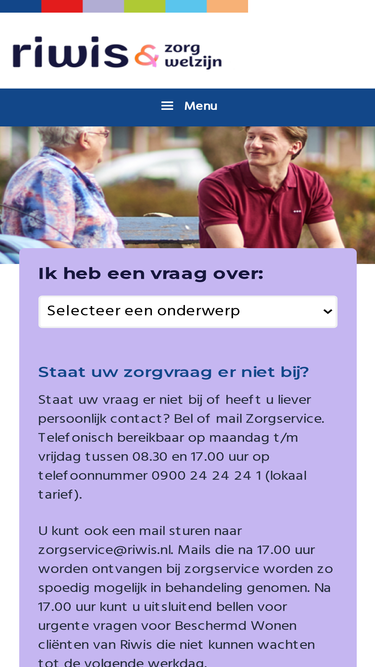 87%Servicedesk – voor algemene en zakelijke vragen Bel de servicedesk voor algemene en zakelijke vragen via T 055- 539 45 00 Zorgservice – specifiek voor zorg- en begeleidingsvragen Onze Zorgservice behandelt alle aanvragen voor zorg, begeleiding en andere diensten aan cliënten. Zij zijn het eerste aanspreekpunt voor de organisatie. Zij zijn te bereiken via […]