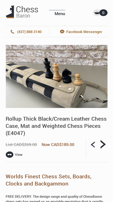 93%Leather Chess? Yes, let's rebel against the ordinary, disrupt the mundane, redefine the chess experience. This is a thick Tan leather Chess mat with double weighted staunton wooden chess pieces, with caps and strap developed exclusively by ChessBaron, that doesn't just sit on your table - it commands attention. Yes, it lies flat - no curls! It is full size measuring 20" in width and length, both durable and portable. When rolled up it measures 21" with the caps and strap and hoisted over your shoulder looks chic and cool. The product comprises the thick leather mat, double weighted staunton chess pieces, and the containing leather case. Not just leather. Thick, stitched and somewhat luxurious leather chess.