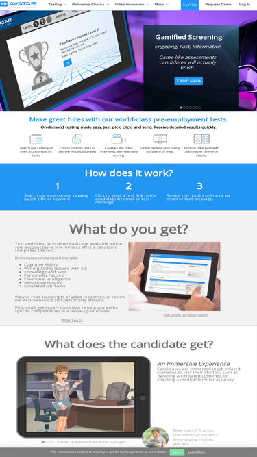 83%hr avatar provides pre-employment tests, job simulations, and assessments for over 200 specific job titles in an easy-to-use, self-service format for employers. each test measures a full range of important traits including cognitive ability, personality and job fit, past behavioral history, and relevant knowledge and skills. all tests work on popular mobile as well as non-mobile devices and employ animation to create job-related scenarios.